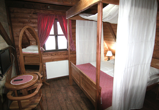 Spaciousness, a major feature of this suite, in no way lessens the elegance of the interior, quite the contrary it highlights all the features of traditional architecture from solid wooden structure, limestone facing, old-style furniture and the spirit of days gone by. The suite includes a living room, bedroom, bathroom and a toilet. The bedroom is equipped with a king size bed with a canopy, standard size spare bed, wardrobe, LED TV and a safe. The living room is equipped with a pull-out bed, chest of drawers, fridge, sitting table, LED TV, a small table, armchair and an air-conditioning unit. Spacious bathroom, along with toilet facilities, has a hairdryer and a complete set of toiletries.